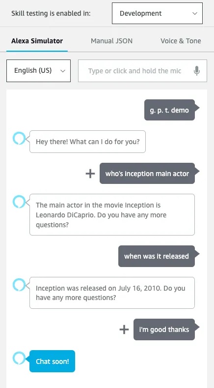 Congrats! You’ve successfully created an Alexa skill using Voiceflow and GPT-4. From here, I encourage you to have some fun exploring the capabilities of OpenAI’s GPT models and engaging in conversations with your new Alexa AI assistant.