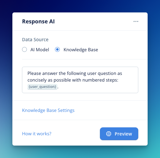 - Safely experiment with LLMs. While there’s a lot of buzz about LLMs in the industry, we’ve observed that intelligent controls are a much-needed feature, particularly for enterprises. By leveraging the Knowledge Base data source in your AI steps, you can experiment with generative AI without putting your organization at risk.